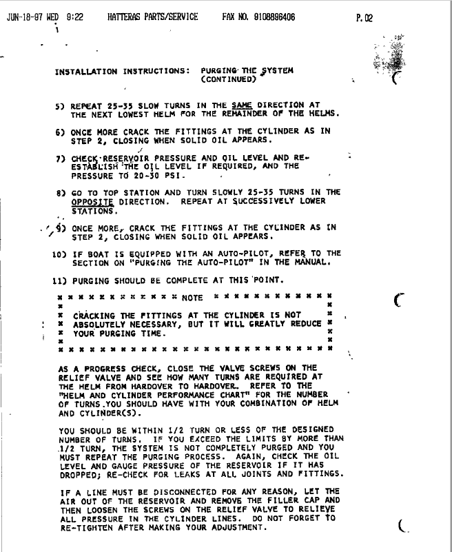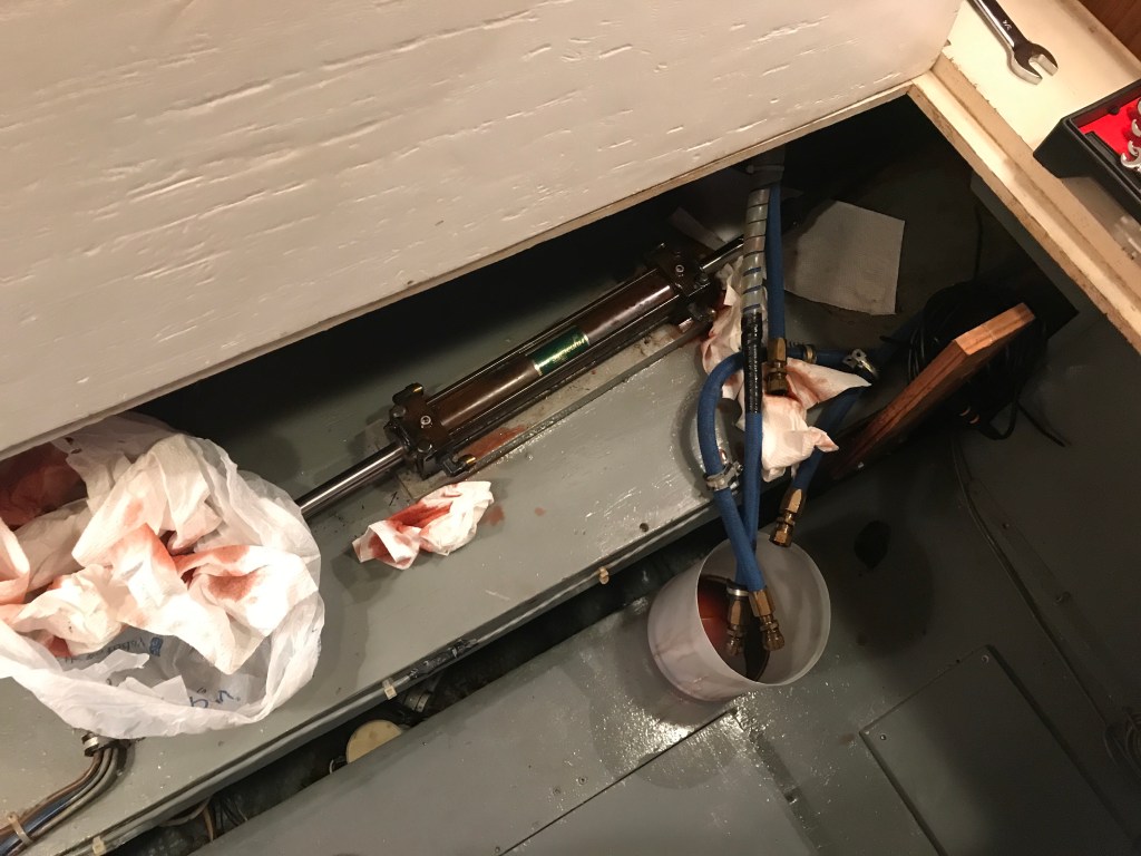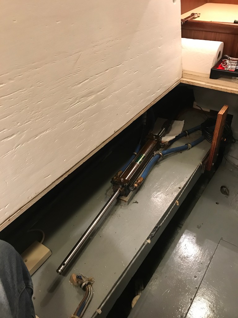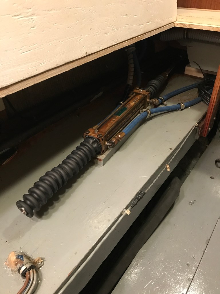 The autopilot pump was defective and I had it replaced by the professionals, in the interest of time. (Boat was for sale at this point) After that the lower helm wasn’t working right (air in the system). Many turns with occasional movement. They hadn’t bled it properly. But, they sort of washed their hands and told me in not so many words I was on my own as the piston was leaking a little when hard over. They had a point, sort of. Unfortunately they were electronics people and didn’t want to mess with the hydraulic end of it. I discovered all this during the sea trial for the sale to the next owners….. Wide open throttle doing 20 knots with dodgy steering. Hee-Ha! Made it work.