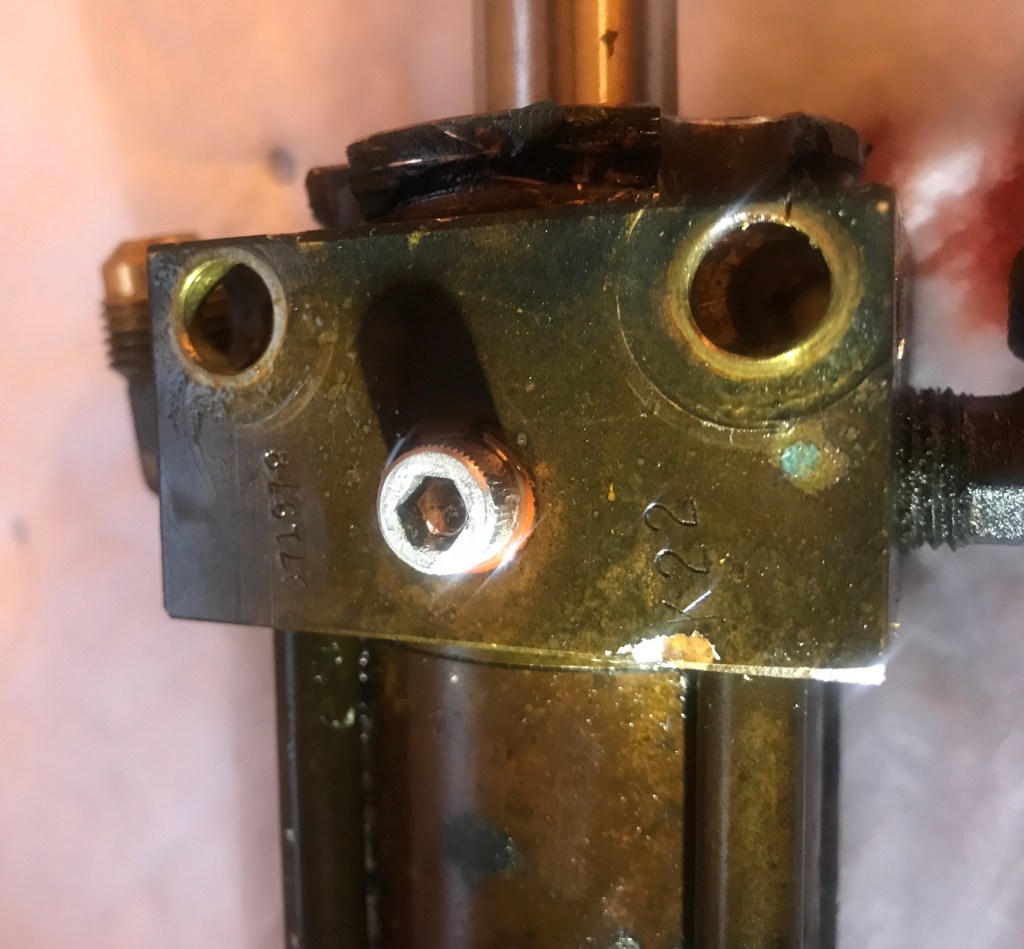 Except it all wasn’t working as advertised. To SB the helms (both) were hitting the stop, and not spinning endlessly. So, it appears that the pressure relief valve was not working. It’s a simple thing, (static) hydraulic pressure in, one from each side, and a pressure loaded relief valve, one per side. When pressure on either side exceeds 950psi, the valves opens and pressure is relieved and the fluid sent back to the reservoir. When you release the screw/nut combo the pressure on the spring decreases and the valve opens at a much lower pressure. This allows you to turn and turn the wheels without running into a stop as it keeps bypassing. The side effect is that you are circulating the fluid through the system, and any air is trapped in the reservoir. But, even with the valve released I was hitting the stops, ergo that valve was not releasing. (You can feel the pressure releasing when you back out the nut/screw combo, sort of. With your arm bent into positions you don’t normally assume it’s hard to feel anything).