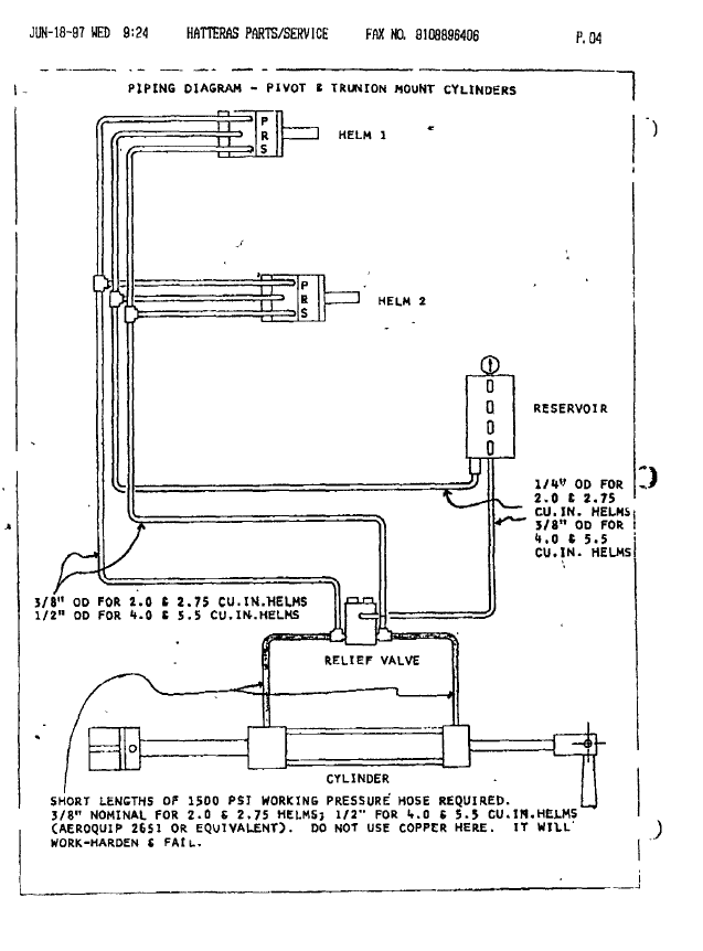There is one VERY salient detail that took me a few to get my head around. In the diagram there is a “T” at the PRV. On my setup there was a hose that went to the piston. In fact, unlike the diagram there are TWO hoses on each end of the piston, which sent me down a “supply/return” rabbit hole. WRONG. The piston IS the “T”. One side is supply, one port one starboard, the other hose on the same side is the relief hose to the PRV.